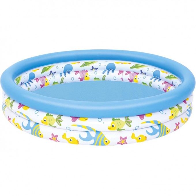 Надувной круглый бассейн Bestway "Океан" для детей от 2 лет. Изготовлен из высококачественного винила, устойчивый, надежный и безопасный. Имеет мягкие стенки с широкими бортиками и жесткое дно из ПВХ-пленки.